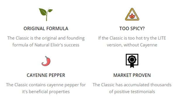 Boost your immune system with NATURAL ELIXIR CLASSIC – the original recipe and the most popular, the classic contains the spicy but hugely beneficial CAYENNE PEPPER in it’s ingredients.