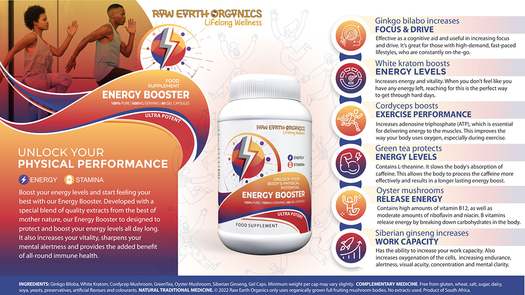 Developed with a special blend of quality extracts from the best of Mother Nature, our Energy Booster is designed to protect and boost your energy levels all day long.