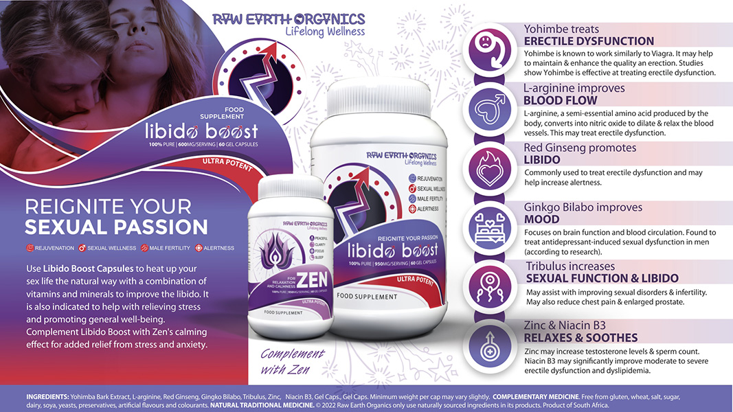 It is also indicated to help with relieving stress and promoting general well-being. Complement Libido Boost with Zen's calming effect for added relief from stress and anxiety.