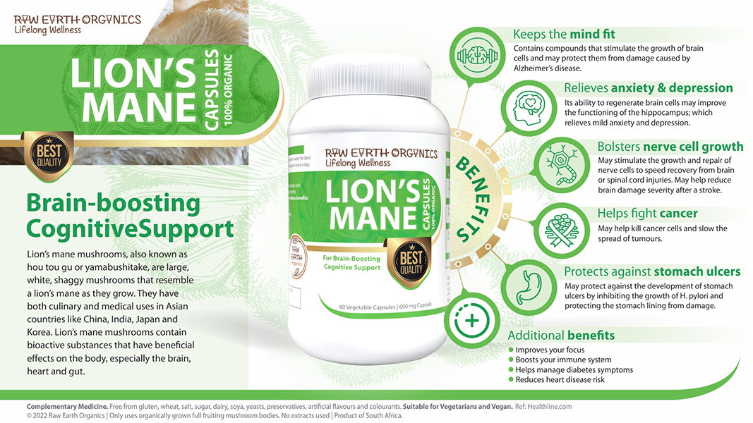 Lion’s mane mushrooms contain bioactive substances that have beneficial effects on the body, especially the brain, heart and gut.