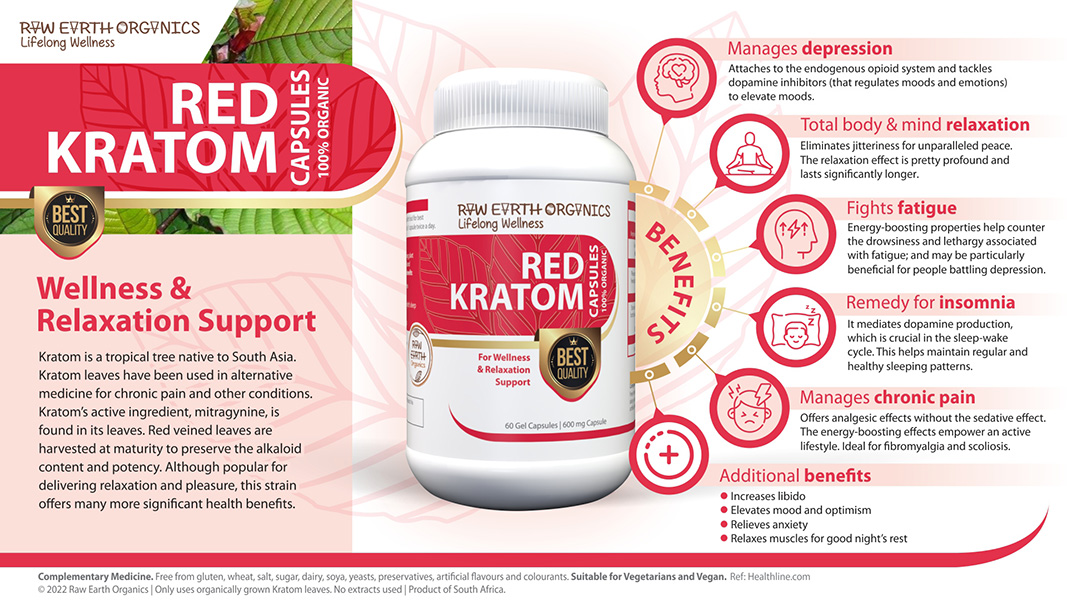 Kratom’s active ingredient, mitragynine, is found in its leaves. Red veined leaves are harvested at maturity to preserve the alkaloid content and potency.