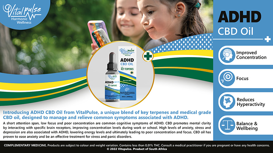 Introducing ADHD CBD Oil from Vital Pulse, a unique blend of key terpenes and medical grade CBD Oil, designed to manage and relieve common symptoms associated with ADHD.